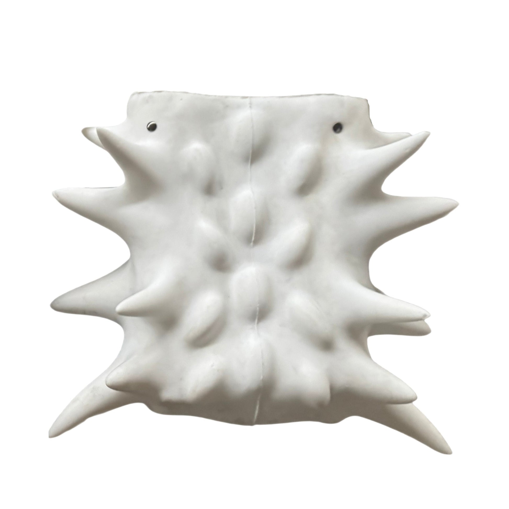 The handmade silicone spike backpack directly welds the ”alien genes“ to the body. The irregular growth sense is deliberately retained during the production, and the functional symbols of the traditional backpack are deliberately weakened. Instead, the black and white colors are used to create a minimalist yet tense visual.